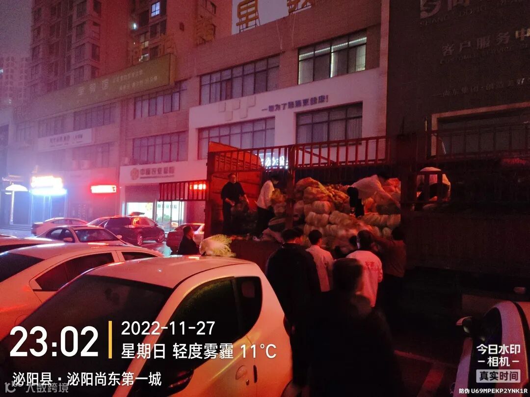 满载新鲜蔬菜的卡车于11月27日晚上11点多到达指定临时卸菜点,尚东集团集结数十名领导和员工经过两三个小时的忙碌,迎着寒风、冒着大雨完成首批蔬菜的卸车工作,加班加点、星夜奋战,只为让新鲜蔬菜早一点送到业主们的手中。