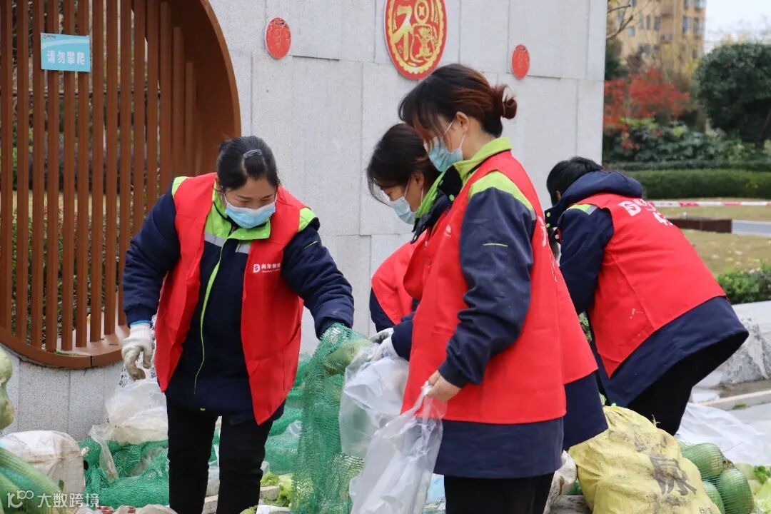 ▲尚东物业团队将白菜、萝卜运送至尚东各个小区