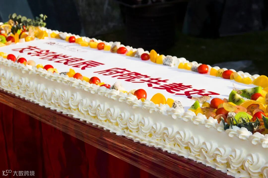 一场仪式感十足的生日派对当然少不了生日蛋糕,1.5m*0.6m的巨型生日蛋糕引来现场惊叹连连。