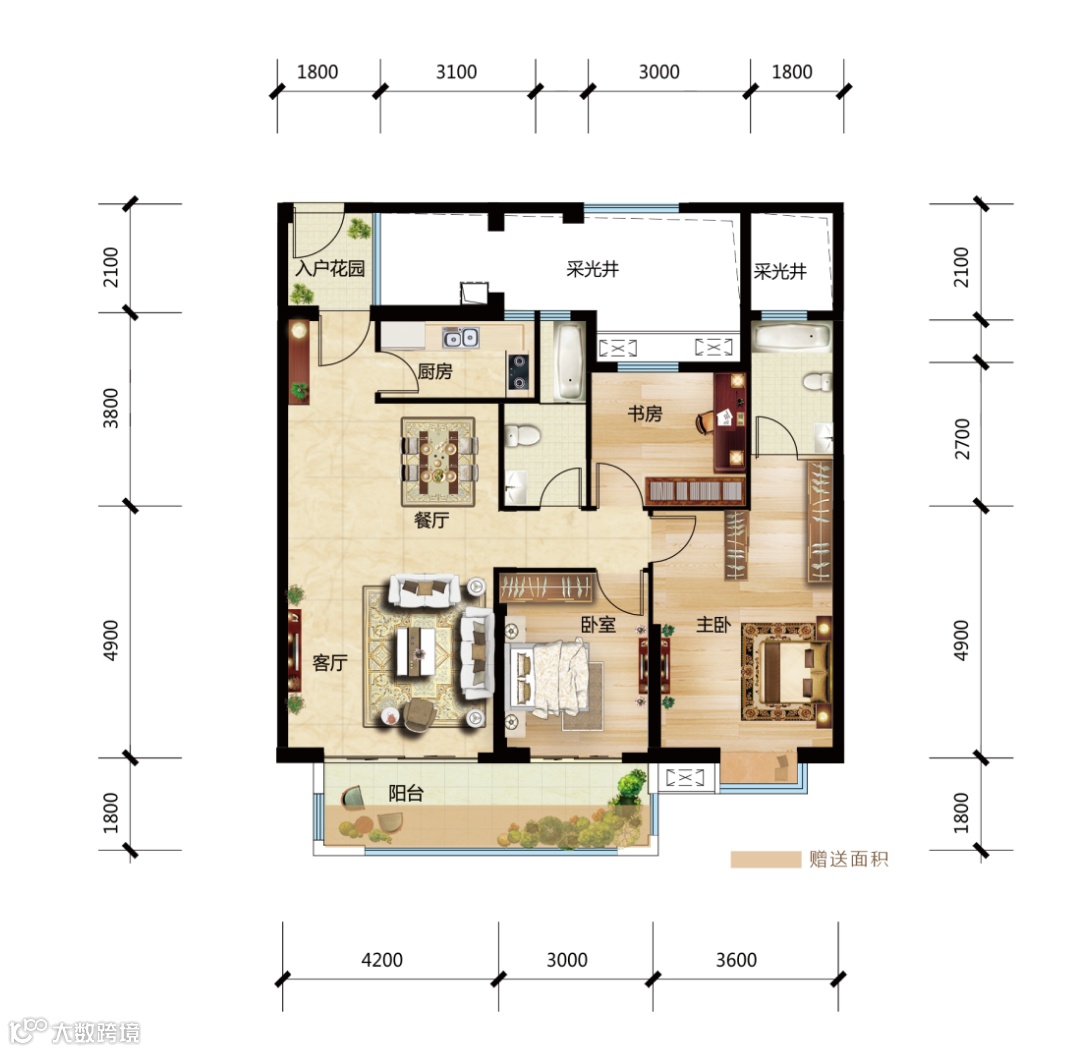 *(3米标准层高,在业主安装完中央空调后,仍能保证良好的空间感受)