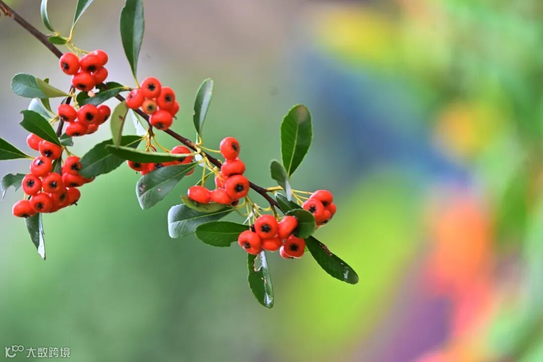 海棠大道附近还有火棘、山楂、金丝桃等植物。火棘又名吉祥果,树型优美,夏有繁花,秋有红果,全身是宝,具有良好的药用价值和观赏价值。