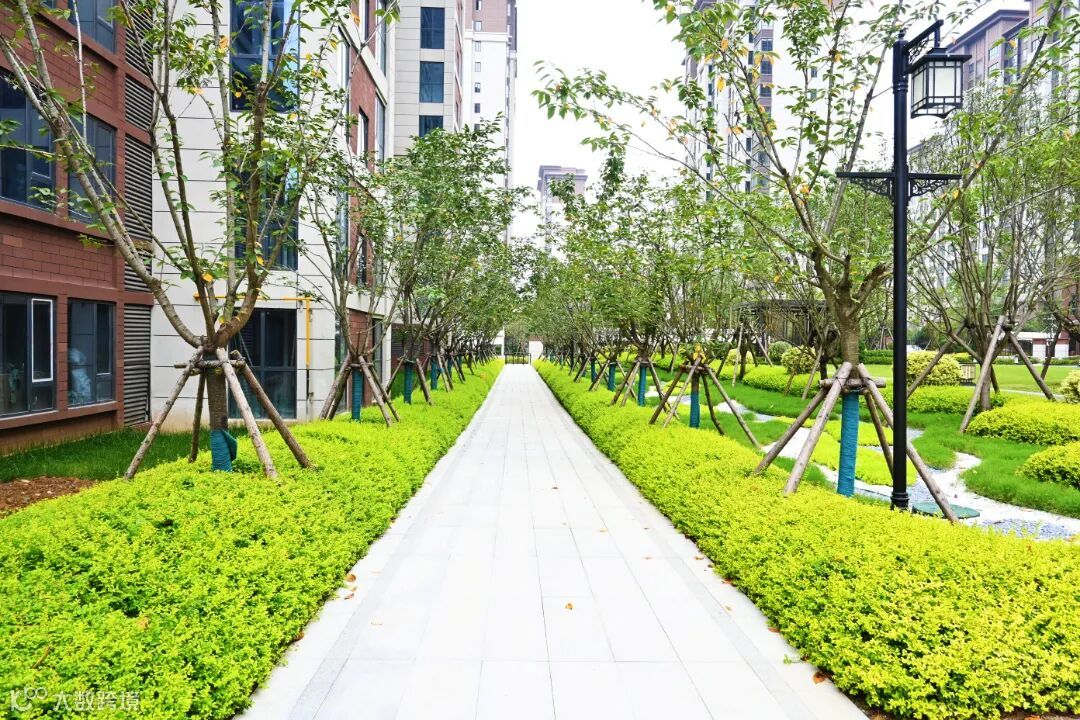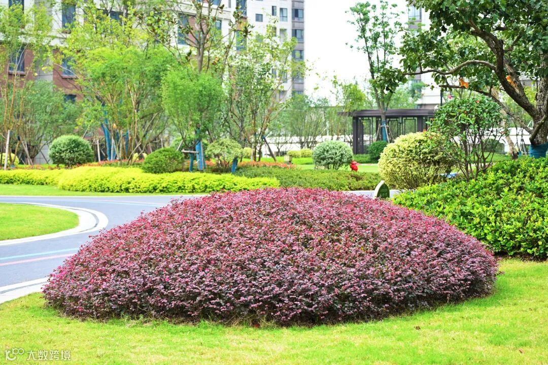 园区中分布有红花檵木、亮晶棒棒糖、金姬小蜡、银姬小蜡、金边黄杨等球状造型树,丰富景观特色的的同时,为园区带来无限的生机与灵动。