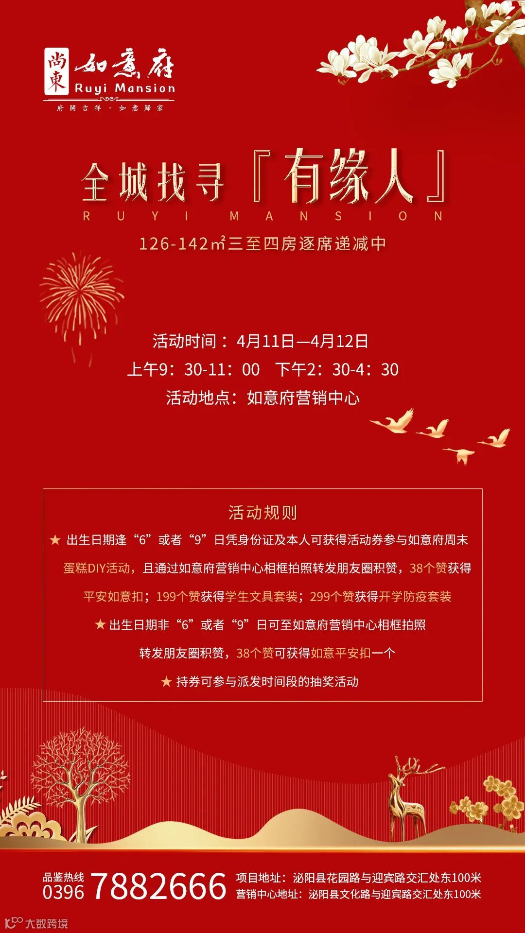 针对逢“6”、“9”出生的人,可凭身份证获取活动券在如意府免费做蛋糕,并有机会在异形相框拍照发朋友圈点赞获得相应礼品(38个赞获得平安如意扣;199个赞获得学生文具套装;299个赞获得开学防疫套装)