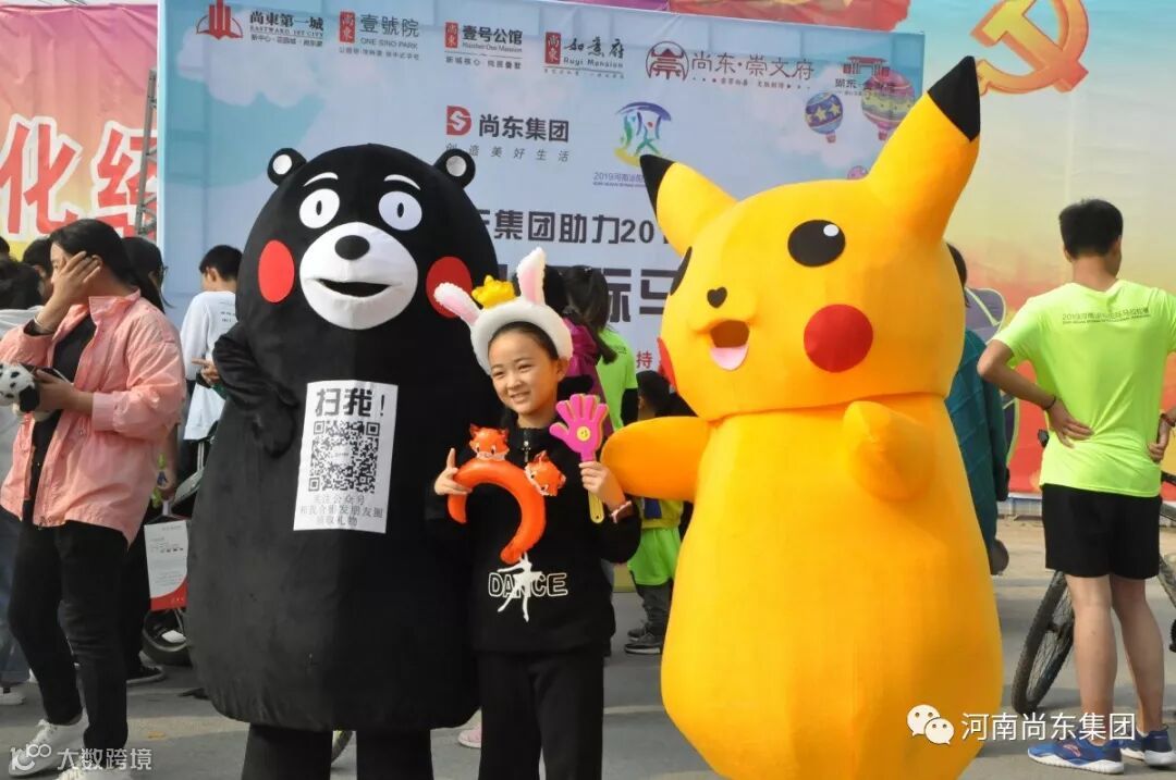 中州国际商城迷你赛终点处,也有尚东团队的小伙伴们准备好了纯净水和可爱的小礼品,呆萌的皮卡丘和“贱兮兮“的熊本熊把终点处的热度又掀起了一个小高峰。