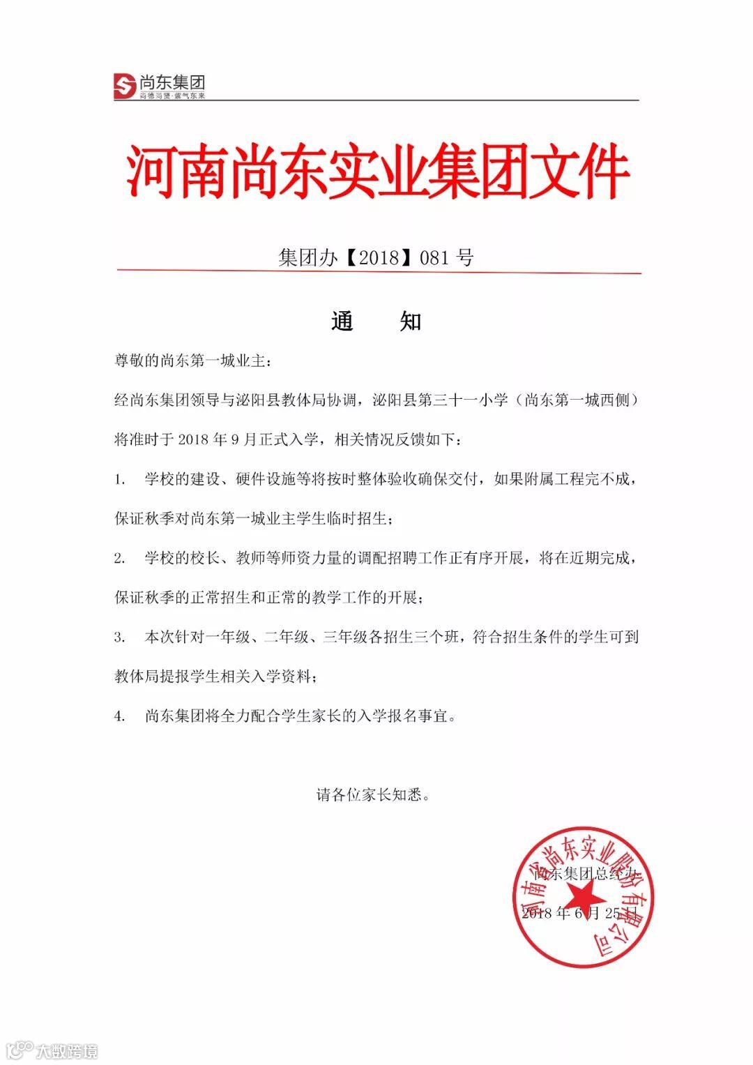 经尚东集团领导与泌阳县教体局协调,泌阳县第三十一小学(尚东第一城西侧)将准时于2018年9月正式入学,相关情况反馈如下: