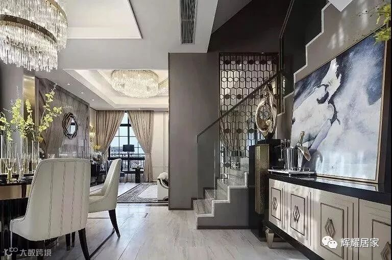 此次设计主打轻奢大都会风格,总体空间尺度舒怡。从内到外,从居所的尊贵享受延伸至真实的居家态度,以低调的优雅、自然的华美、沁心的质感。