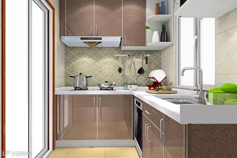 部分客户选择墙地砖只追求好看、防滑,往往忽视清洁问题。表面凹凸不平的瓷砖若不勤擦勤洗,时间一久,油垢就会粘附在缝隙和微孔中难以去除,从而影响厨房的清洁和美观。小辉建议你,在挑选诸如瓷砖时,宜用亮光面的釉面砖。在没有设计师指导的情况下,可用白色、乳白色,不宜用骨色或者深色类的瓷砖。