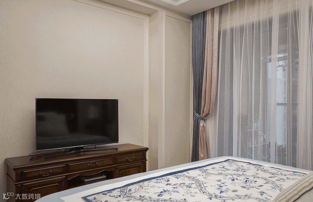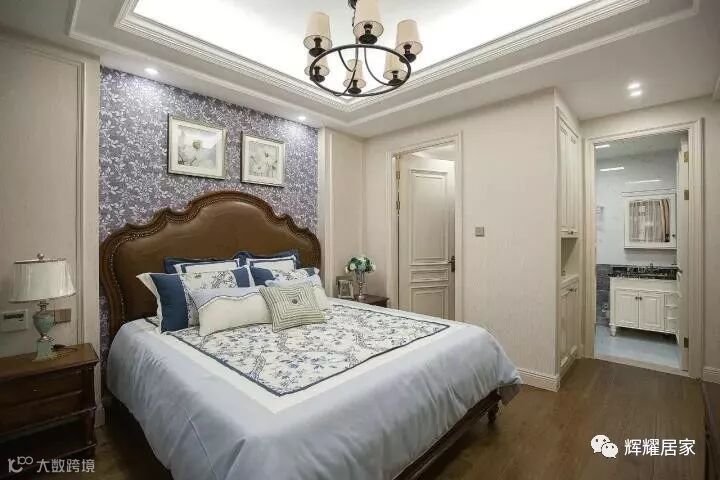 床头背景与床垫相呼应,有一种优雅美