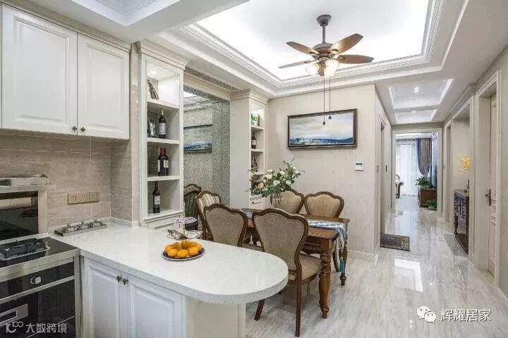 开放式厨房,用吧台增加储物空间及操作台面