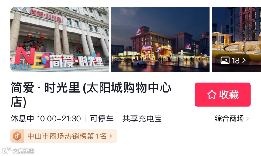 2024年,简爱时光里荣获抖音本地团购中山市商场热销榜第1名。