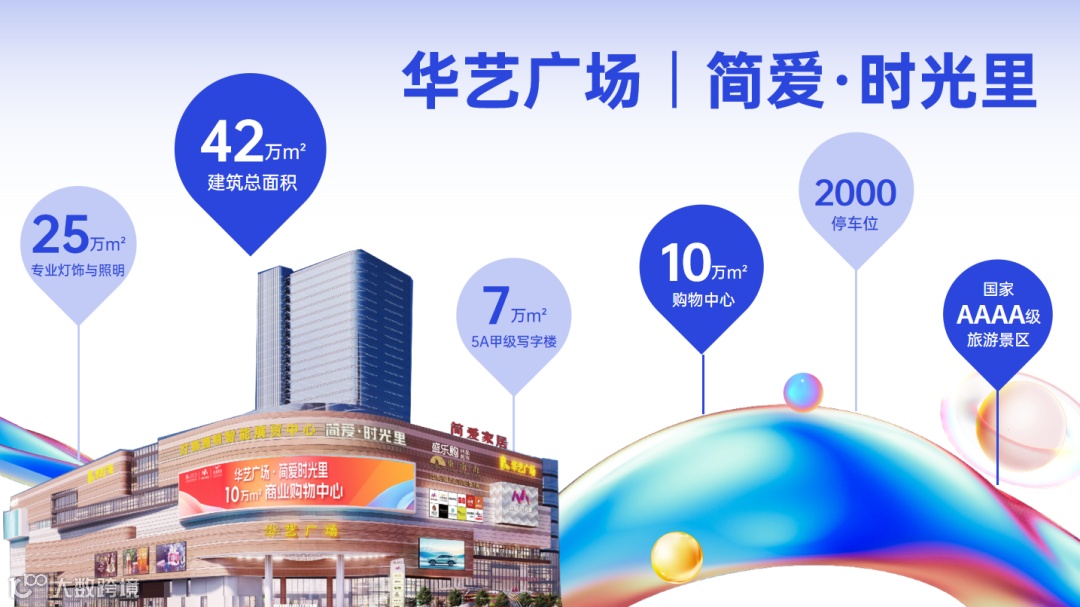 华艺广场携手简爱·时光里,总建筑面积42万m²,涵盖25万m²专业灯饰与照明、10万m²购物中心、7万m²5A甲级写字楼,拥有2000个停车位;汇集高端商务、轻奢名品、精品超市、品牌服饰、全球美食、家居美学、休闲娱乐、亲子陪伴等,赋能华艺广场项目,丰富和完善生活、商务配套等业态,提供多元化的服务,塑造以艺术、圈层、定制生活为核心的高品质一站式4A生活美学空间。