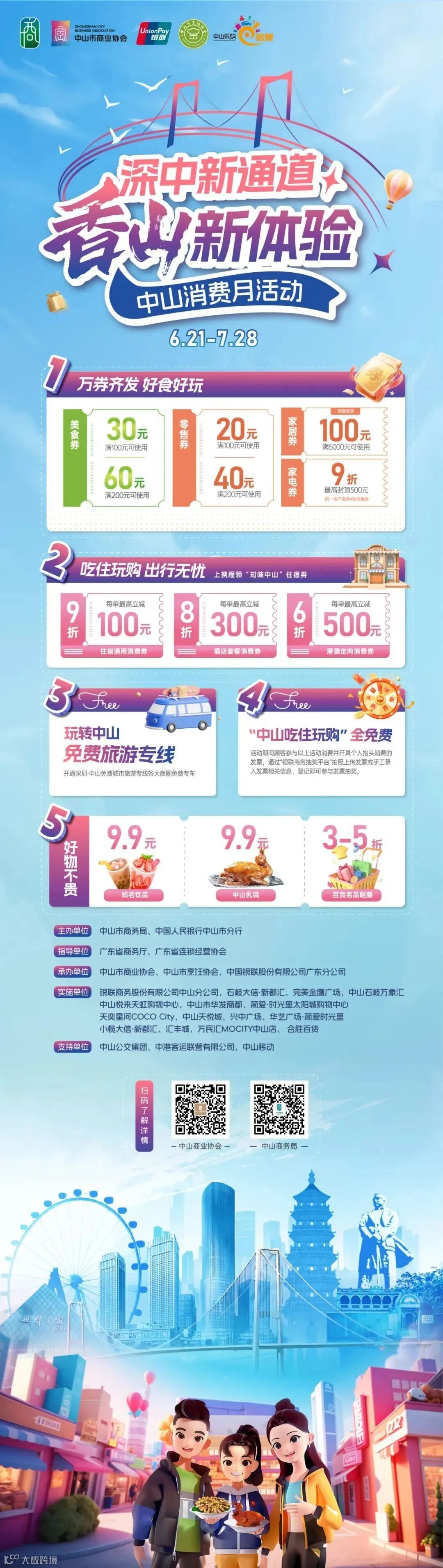 广东省连锁经营协会专职执行会长张小琳表示,深中通道已开通,借此东风,启动“深中新通道 香山新体验”中山消费月活动,旨在通过“吃、住、行、游、购、娱”的全场景覆盖,搭建起一座连接深中、促进交流的桥梁,让消费成为推动两地融合互促、共同发展的新引擎。