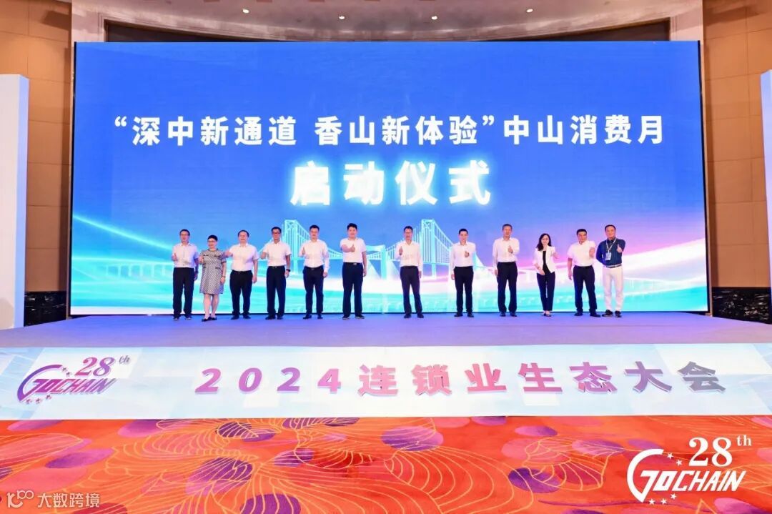 由广东省商务厅、广东省连锁经营协会指导,中山市商务局、中国人民银行中山市分行主办,中山市商业协会、中山市烹饪协会、中国银联股份有限公司广东分公司承办,中山公交集团、中港客运联营有限公司、中山移动支持的“深中新通道 香山新体验”中山消费月活动在大会上正式启动。此活动旨在深中通道正式通车之际,进一步推动深中两地在消费领域的深度合作,激发中山消费潜力。