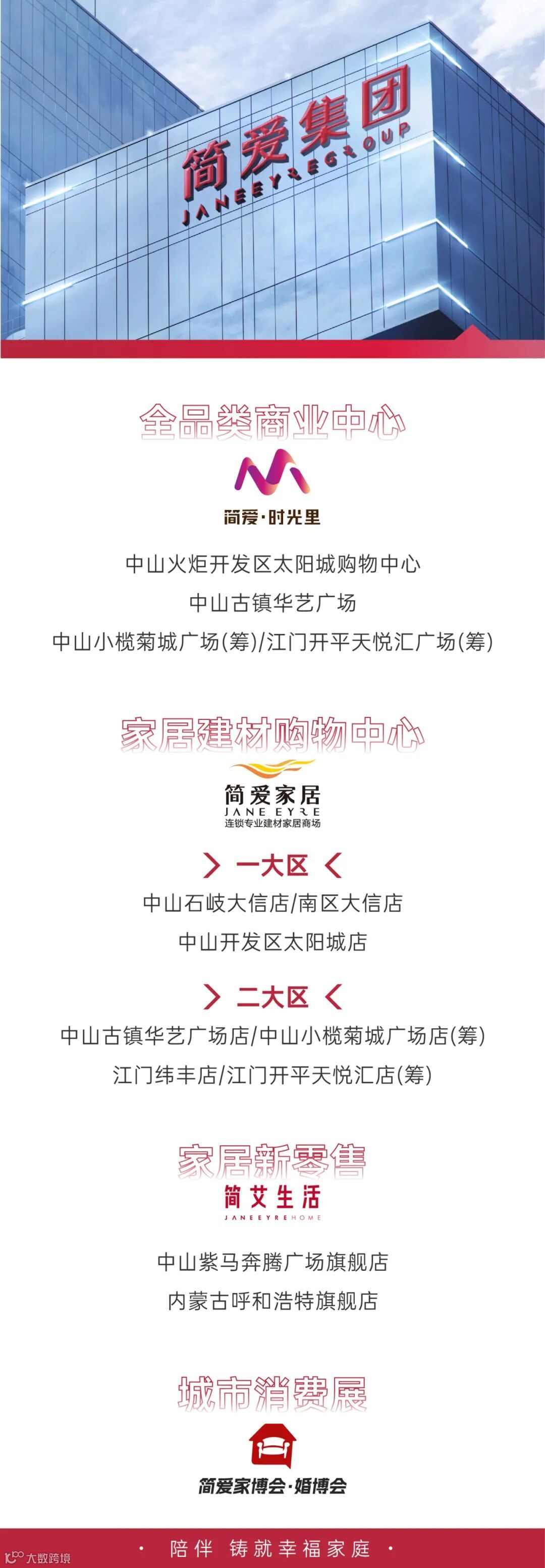 以“家庭”为核心,打造高品质家居生活与优质购物平台:全品类商业中心「简爱·时光里」;家居建材购物中心「简爱家居」;城市消费展「简爱家博会」;家居新零售「简艾生活」。