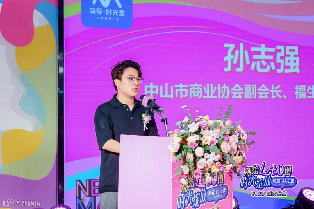 简爱集团招商中心总监兼简爱时光里小榄菊城广场总经理陆梓骏代表主办方向各位领导嘉宾表示了最诚挚的感谢和热烈的欢迎!简爱时光里小榄菊城广场经过全面高标准升级改造,至今年6月底完成并经消防合格验收通过,短短三个多月时间,盒子招商率超过85%,开业率超过75%,目标在2024年第四季度达成95%开业率!以8万㎡商业购物中心+社交娱乐街区,倾力打造小榄北区新商圈!简爱时光里小榄菊城广场坐拥维也纳星级酒店、健身会所等星级商务配套,先后进驻了6000㎡福生超市、3000m²果果乐园室内儿童游乐园、2000m²湘满楼旗舰店(华南湘菜第一品牌、中山首店)、2500m²星悦桌球棋牌俱乐部、1000m²宝贝鸭户外儿童游乐园、小榄镇唯一的“华为授权服务中心"、沪上阿姨第五代中山首店、瑞幸咖啡、蒙自源、文通冰室,儒子牛杂,烘培新锐品牌"十豆川",还有影院,沐足会所,剪发师,美容美业、德尔惠、魔童篮球、卓越家健身、SkyMusic天空音乐KTV等生活体验配套服务一应俱全;美的高端橱电品牌COLMO,香港芝华仕头等舱沙发床垫、慕思床垫、尚品宅配等上市公司头部家居家电品牌,众多实力品牌持续进驻中,为群众带来更优质生活体验。感谢场内所有商户朋友们的信任和支持,期待与更多品牌与商家伙伴携手合作共赢发展,不断优化服务,提升顾客体验,为推动中山市商业繁荣发展贡献力量!
