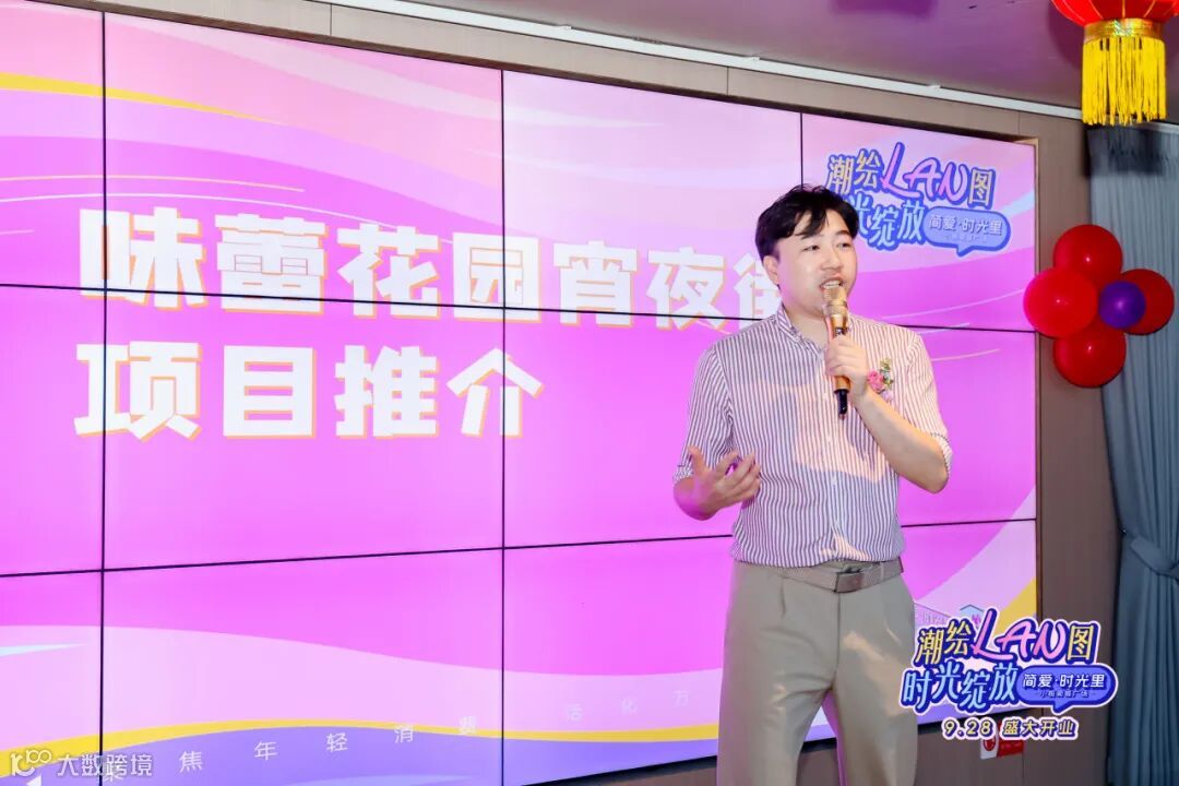 简爱集团招商中心总监兼简爱时光里小榄菊城广场总经理陆梓骏进行“20000㎡味蕾花园宵夜街”项目推介