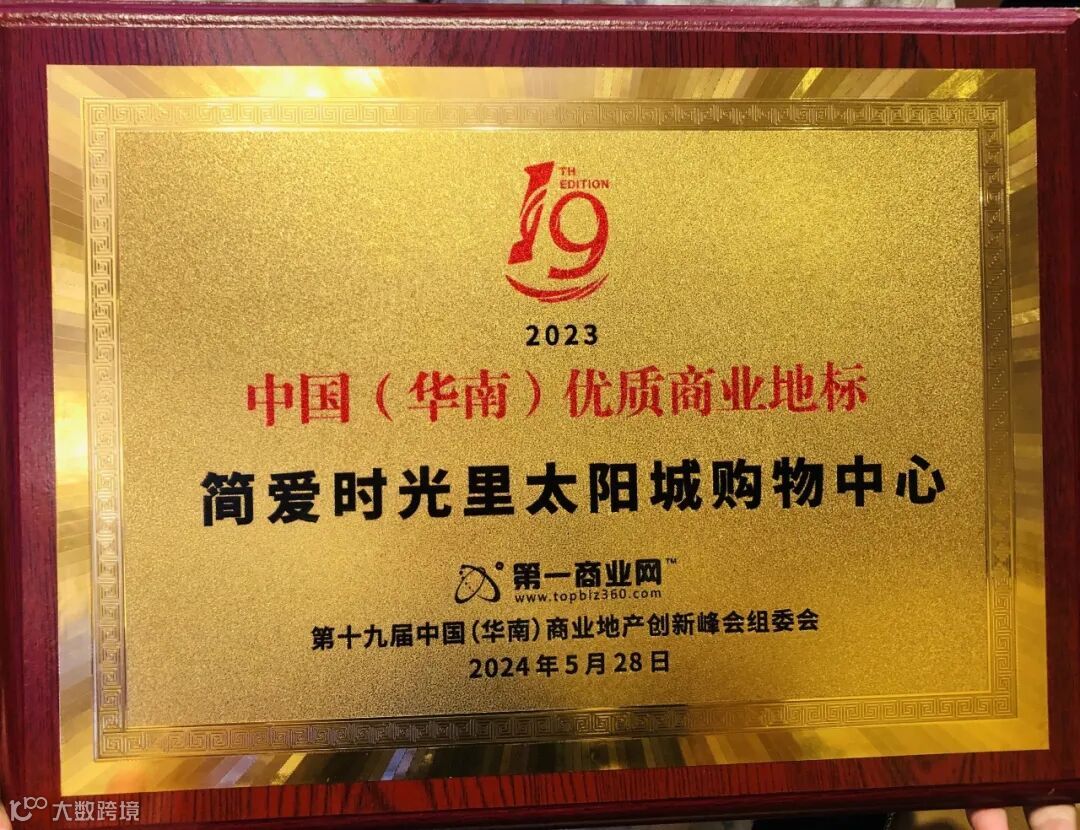 简爱·时光里太阳城购物中心荣获【2023年中国(华南)优质商业地标】