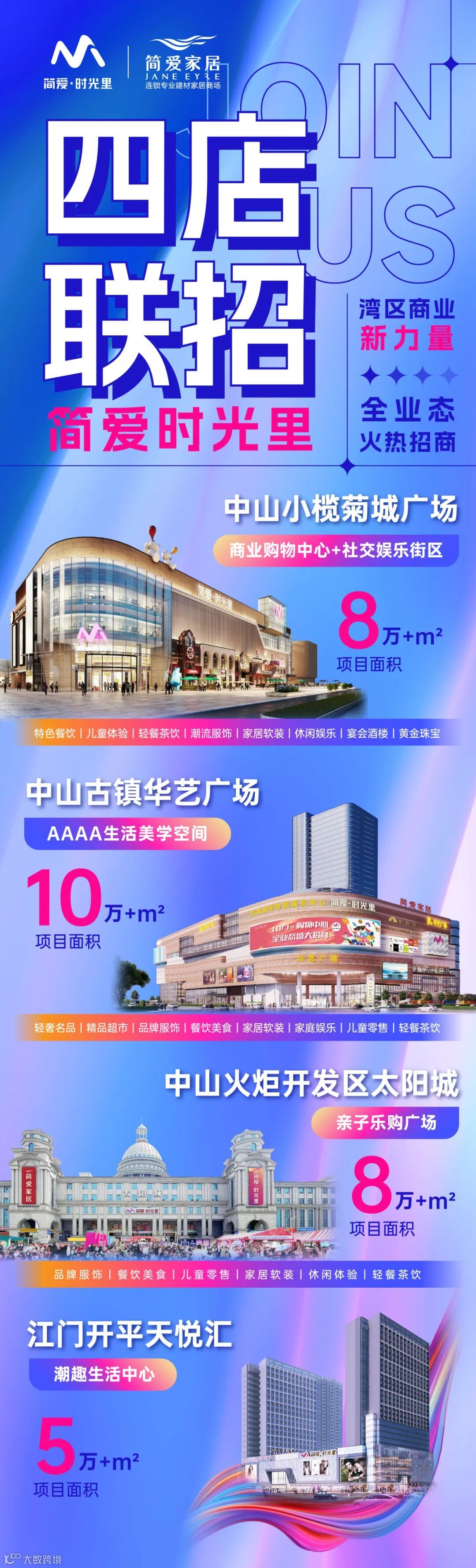 简爱家居:专注行业17年,超100亿总产值,超300场品牌落地活动,服务覆盖一亿人群。坐拥城市CBD黄金商圈千万人流,甄选500+家中高端家居品牌,倾力打造最高品质的家居生活与文化体验平台。新零售时代,简爱家居再升华,不断突破,紧跟互联网时代,升级团队,形成以90后海归新青年为核心的市场营销中心,利用新媒体平台和技术,推动数字化营销转型,构建卖场与商户之间的共同体思想,以“工厂+经销商+商场”三位一体的发展模式打造全新行业格局!携手上下游伙伴开创小而美的精致生活时代,共赢发展,创造时代裂变财富效应。