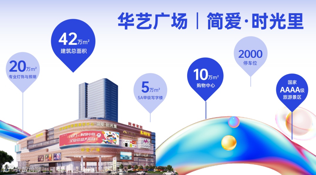 时代潮变,跨界融合已然成为了寻找市场增量的高能打法。华艺广场携手简爱·时光里,焕新升级,总建筑面积42万㎡,涵盖20万㎡专业灯饰与照明、10万㎡购物中心、5万㎡5A甲级写字楼,拥有2000个停车位;汇集高端商务、轻奢名品、精品超市、品牌服饰、全球美食、家居美学、休闲娱乐、亲子陪伴等,塑造以艺术、圈层、定制生活为核心的高品质一站式4A生活美学空间。项目雄踞城市经济核心双轴,5公里辐射35万常住人口;每年举办4场全球灯饰采购节,吸引近百万全球高端商务人士,辐射周边超50万人群。