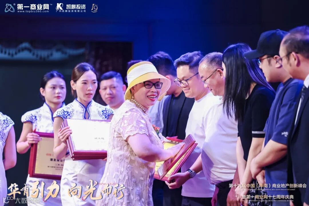 简爱集团董事长罗辑俐作为峰会颁奖嘉宾之一,为荣获中国(华南)年度卓越品牌(2023)的商户代表颁奖。
