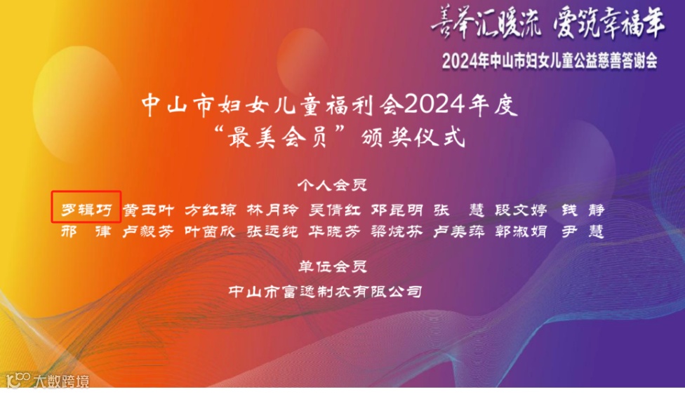 市妇联副主席夏晓霞为福利会会员代表颁发了“最美会员”证书。其中,中山市商业协会妇联副主席、简爱集团行政中心总经理罗辑巧荣获中山市妇女儿童福利会“最美会员”。