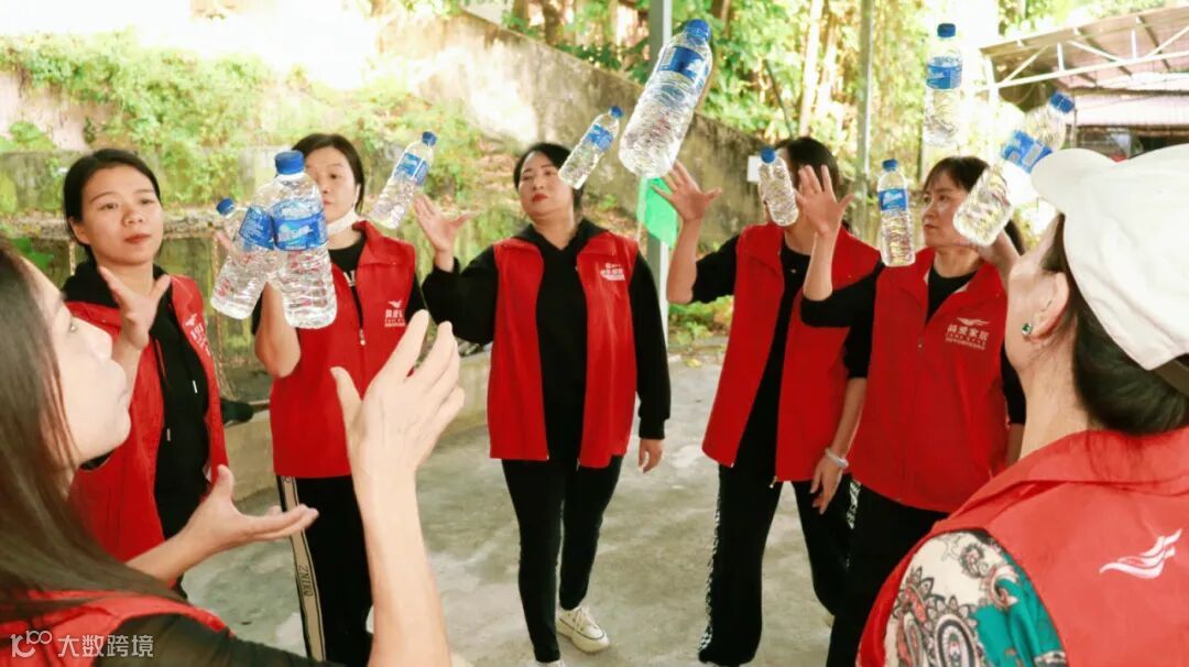 全员合作,鼓劲加油,每个人都将自己的力量聚集在一根柔软的绳索中,通过有节奏、有章法地晃动,组成一个强大的能量圈。简爱人用实际行动一次次挑战自我、超越自我,熔炼出了一只坚强、团结的优秀战队,只需要一个目标、一个动作、一个团队、一条心,只要齐心协力,让看似高难度的任务也变得举重若轻。