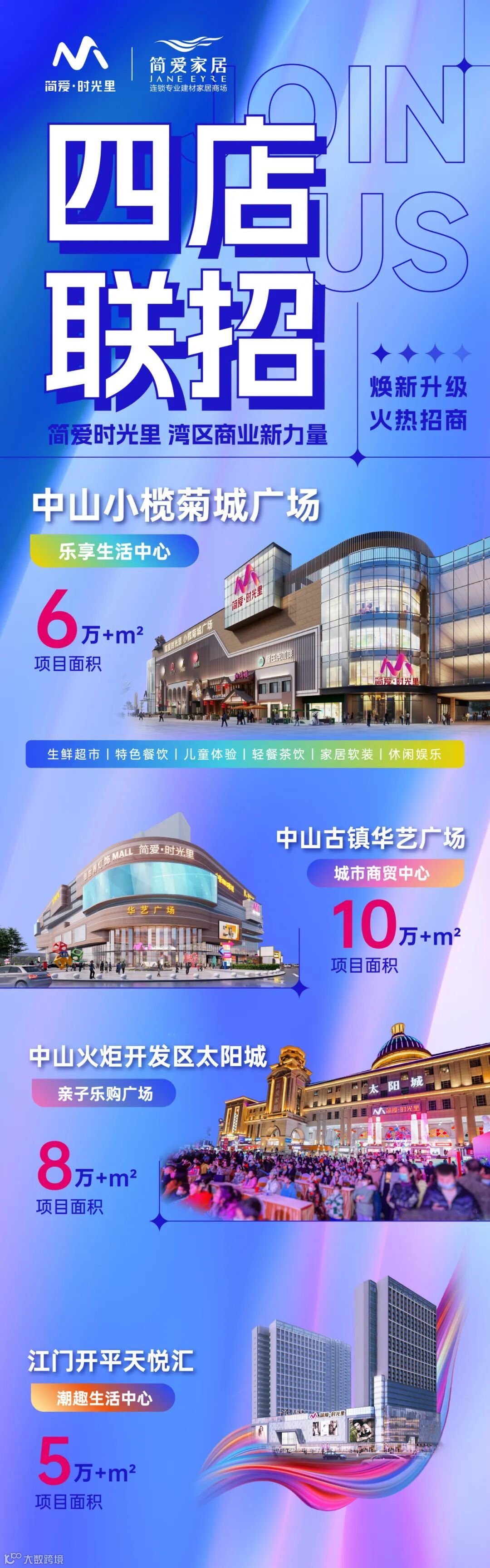 简爱家居:专注行业16年,超100亿总产值,超300场品牌落地活动,服务覆盖一亿人群。坐拥城市CBD黄金商圈千万人流,甄选500+家中高端家居品牌,倾力打造最高品质的家居生活与文化体验平台。新零售时代,简爱家居再升华,不断突破,紧跟互联网时代,升级团队,形成以90后海归新青年为核心的市场营销中心,利用新媒体平台和技术,推动数字化营销转型,构建卖场与商户之间的共同体思想,以“工厂+经销商+商场”三位一体的发展模式打造全新行业格局!携手上下游伙伴开创小而美的精致生活时代,共赢发展,创造时代裂变财富效应。