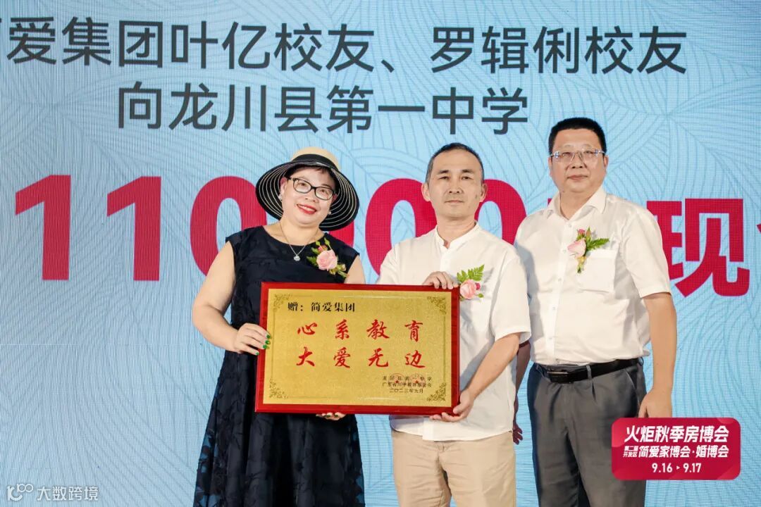 简爱集团作为一家具有高度社会责任感的企业,在企业稳健发展的同时,持续投身于公益事业。为助力教育工作建设,鼓励学生勇敢追梦,简爱集团决定在龙川一中110周年华诞之际捐赠11万教育资金,用于资助贫困(或突发重大疾病)的学生完成学业;奖励优秀学生、优秀教师和有突出贡献的教师;帮助改善学校教学设施。在慈善公益活动的路上,简爱集团从未停步,致力打造最具社会责任感企业而努力!