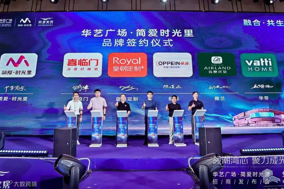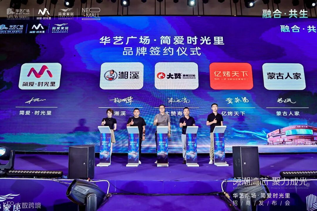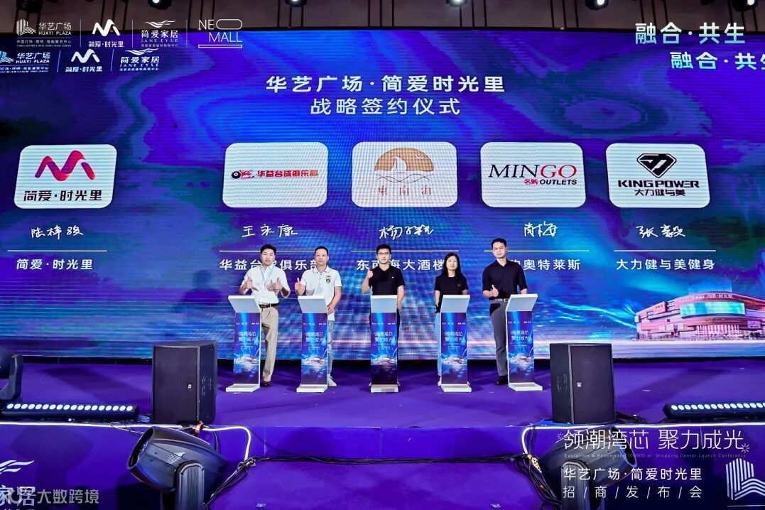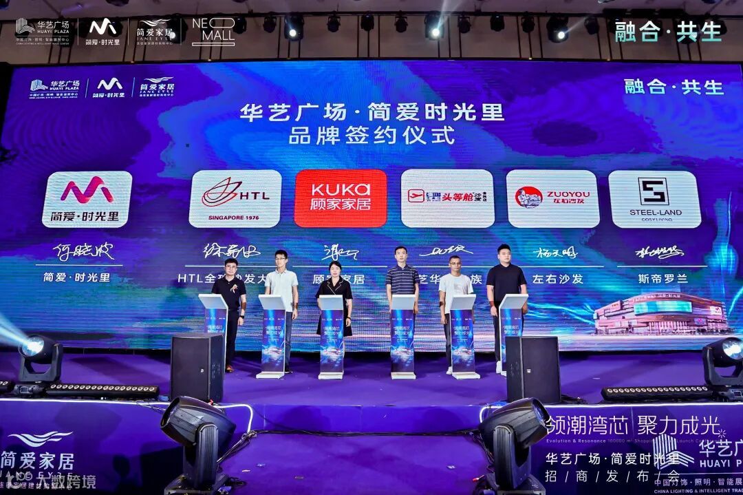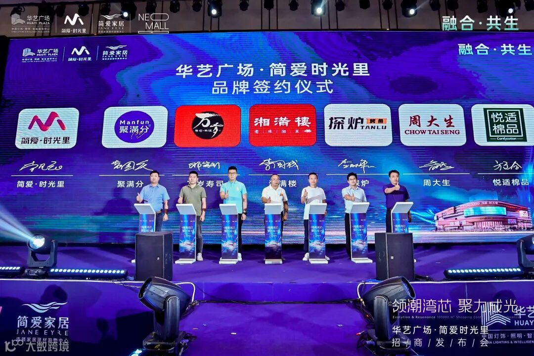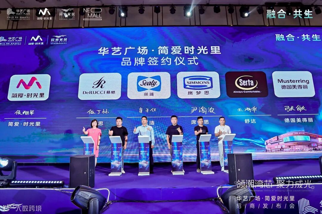 华艺广场·简爱时光里项目体量之大、模式之新,吸引了东南海大酒楼、名购奥特莱斯、华益台球俱乐部、大力健与美健身、探险阳光乐园、六福珠宝、非烤勿扰餐饮集团、联域电讯、老凤祥、大赞寿司、亿烤天下、湘溪、蒙古人家、湘满楼、探炉、万岁寿司、周大生、悦适棉品、聚满分、Kappa、精功/大众/博士、堡马男装、水厂潮饮、鸽宴、小许同学、芝华仕贵族、顾家家居、左右沙发、HTL全球沙发大师、斯帝罗兰、席梦思、丝涟、舒达、慕思、德国美得丽、欧派、皇朝定制、雅兰、喜临门、华帝、老板电器、A.O史密斯、蕾丝、CBD、香港海马国际等近50家实力品牌商家意向入驻,发布会上举办了隆重的战略品牌签约仪式,开启合作共赢、融合发展、流量叠加、互为增量的湾区商业经济新时代!