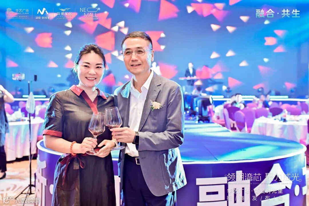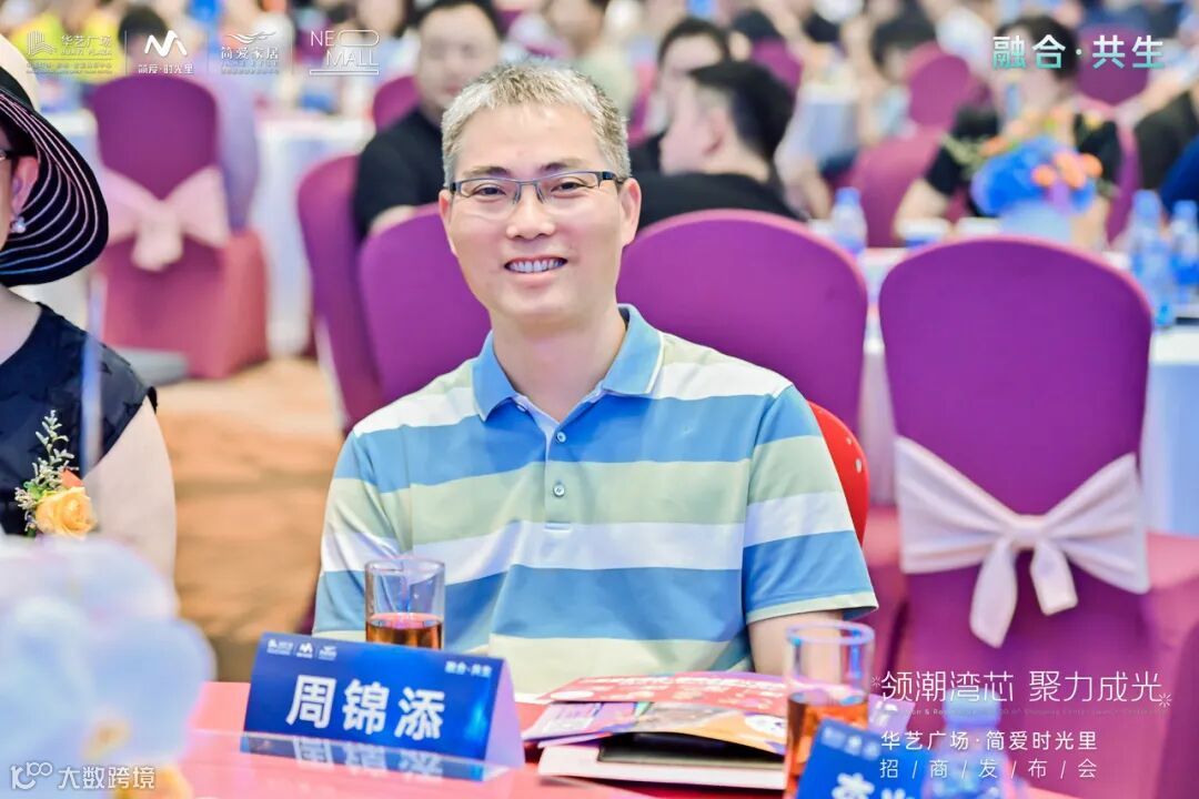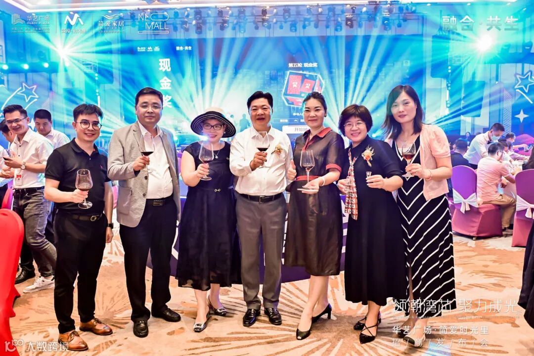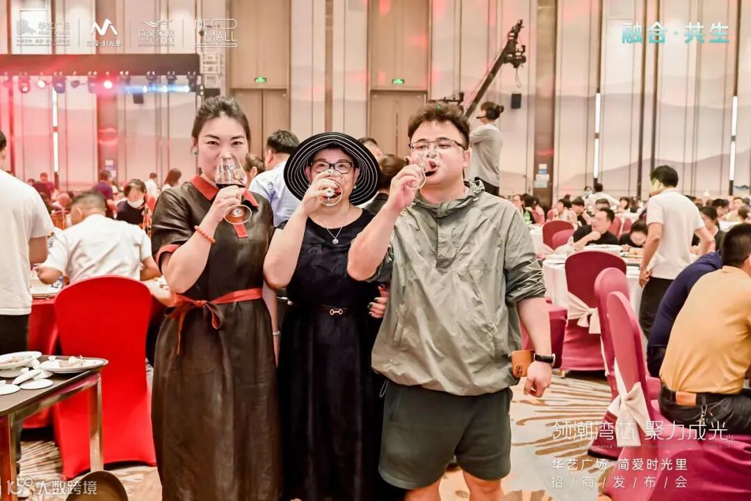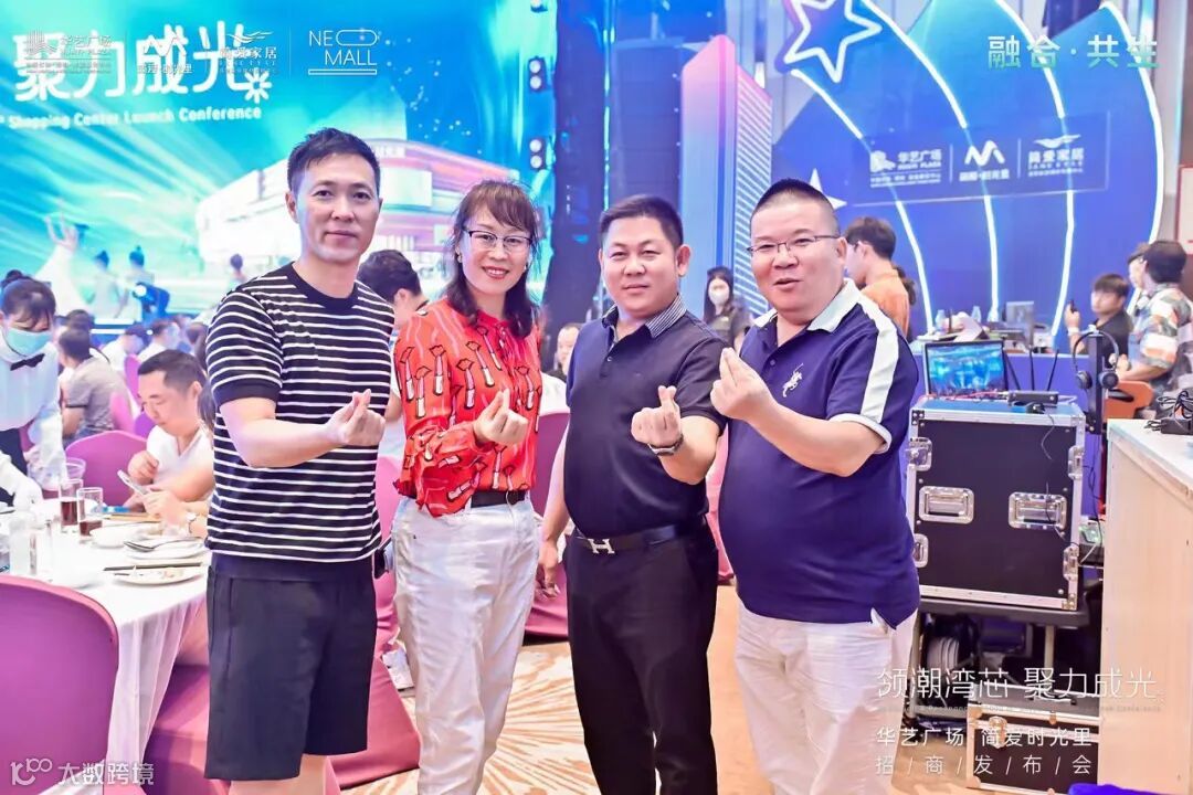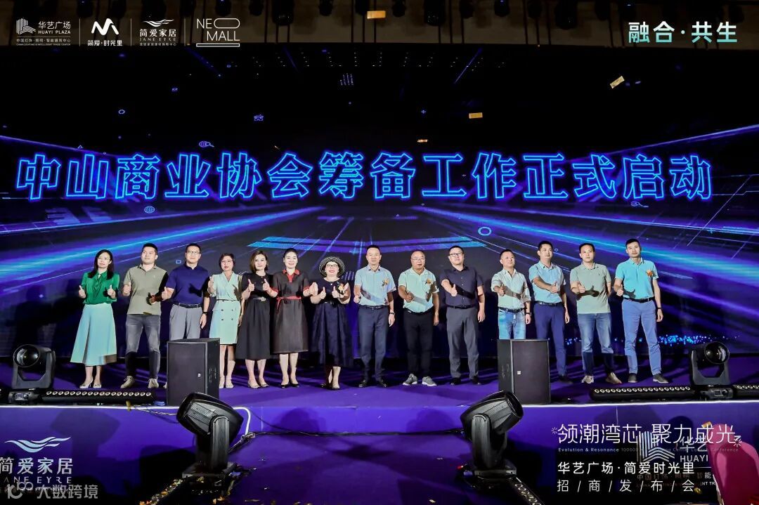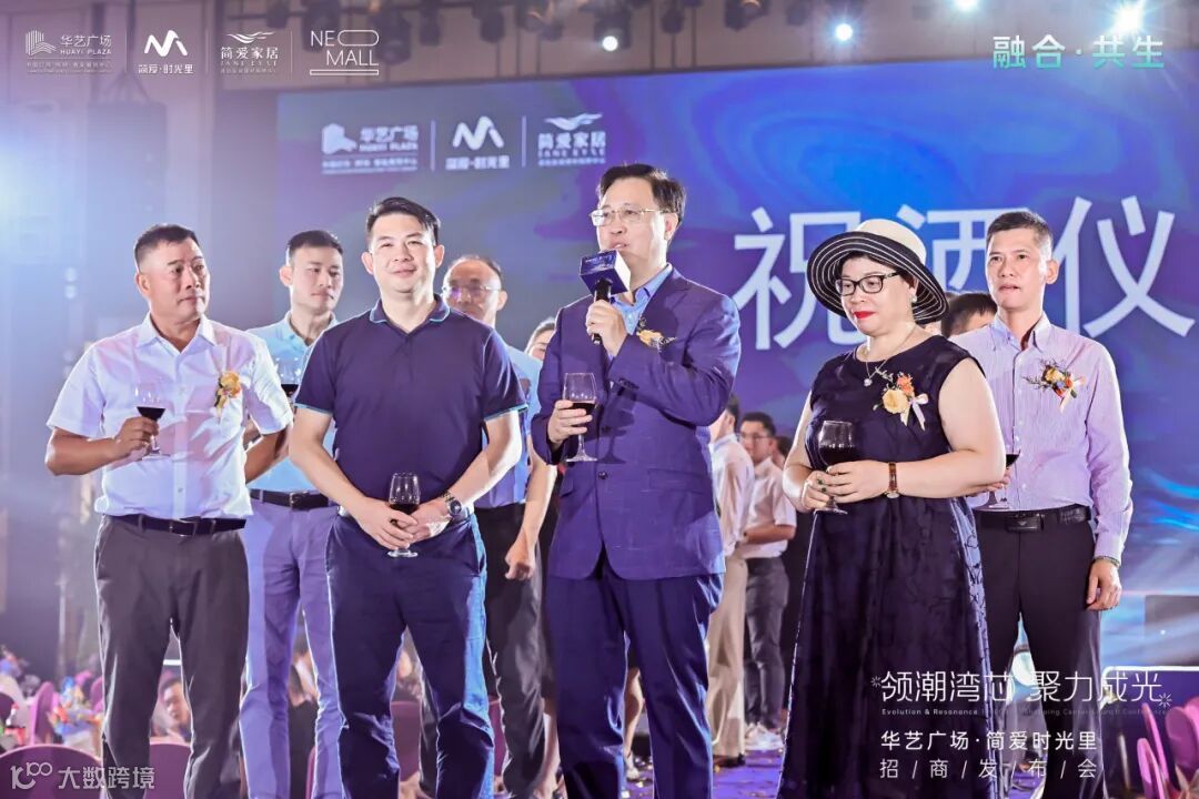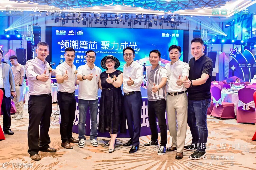 广东省连锁经营协会秘书长樊飞飞、广东省家居业联合会执行会长兼秘书长蒋德辉、中国照明协会灯具专业委员会秘书长/中山照明协会/古镇工商联/常务副主席兼秘书长区德成、华艺集团董事长区锦标、简爱集团董事长罗辑俐、东莞市连锁餐饮发展促进会常务副会长/非烤勿扰董事长朱亚明、老凤祥加盟商曾益康、中国人民政治协商会议广州市荔湾区委员会政协委员/翠华控股有限公司总裁唐一瀚、欧派集团股份有限公司营销第二事业部业务副总经理陈道品、中山市光阳游乐科技股份有限公司副总经理刘海波、1929电影公园总经理陈斌共同参与“领潮湾芯 聚力成光”华艺广场·简爱时光里招商启动仪式。