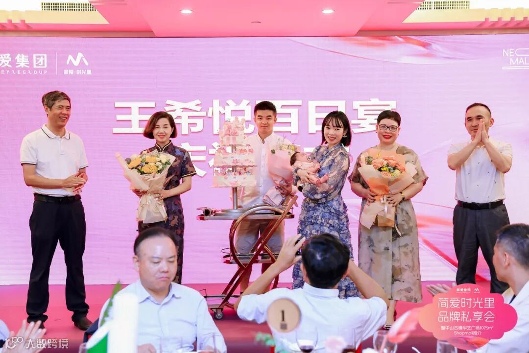 简爱集团在活动现场隆重举办了多多小公主百日宴,接接好运、沾沾喜气,共同祝愿小多多幸福快乐、健康成长!活动现场还准备了由聚满分专业烘焙师手工定制的带着对小多多满满祝福的美味百日宴蛋糕。
