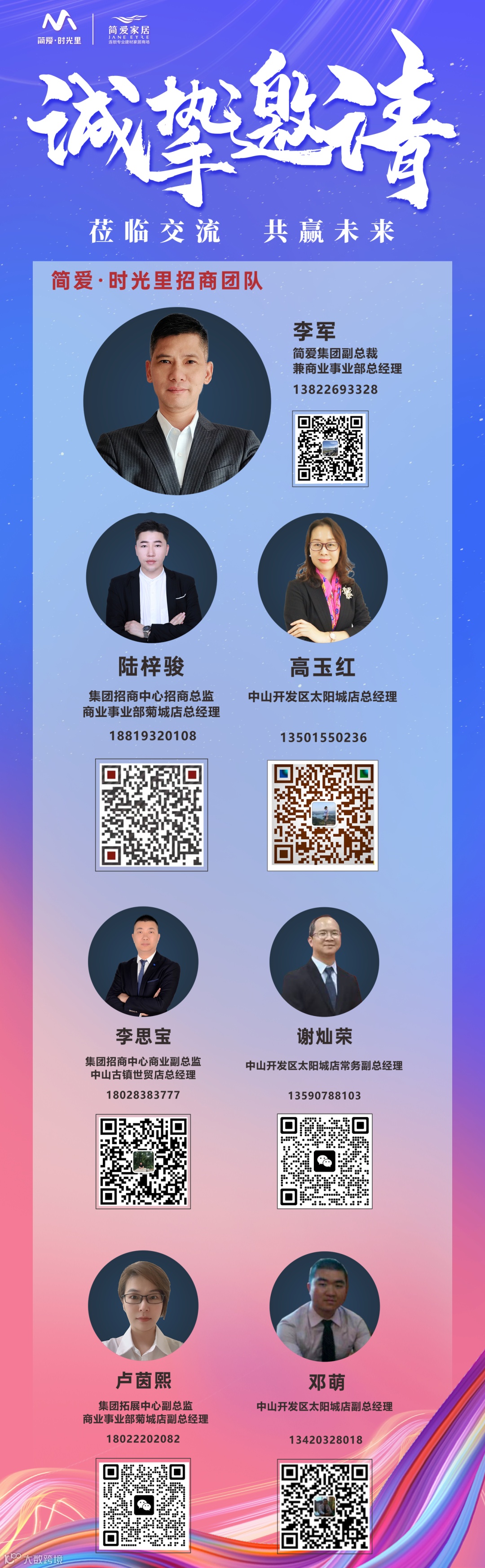 简爱家居:专注行业16年,超100亿总产值,超300场品牌落地活动,服务覆盖一亿人群。坐拥城市CBD黄金商圈千万人流,甄选500+家中高端家居品牌,倾力打造最高品质的家居生活与文化体验平台。新零售时代,简爱家居再升华,不断突破,紧跟互联网时代,升级团队,形成以90后海归新青年为核心的市场营销中心,利用新媒体平台和技术,推动数字化营销转型,构建卖场与商户之间的共同体思想,以“工厂+经销商+商场”三位一体的发展模式打造全新行业格局!携手上下游伙伴开创小而美的精致生活时代,共赢发展,创造时代裂变财富效应。
