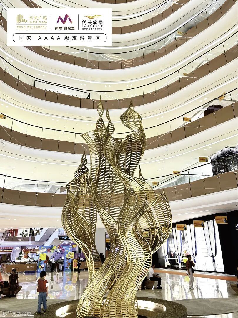 华艺广场灯饰产业文化旅游基地,创新以文旅为产业突破的跨界主题定位,是中山市第三个、古镇镇首个“国家 AAAA级旅游景区”,展示国际灯饰与艺术生活的融合至美。