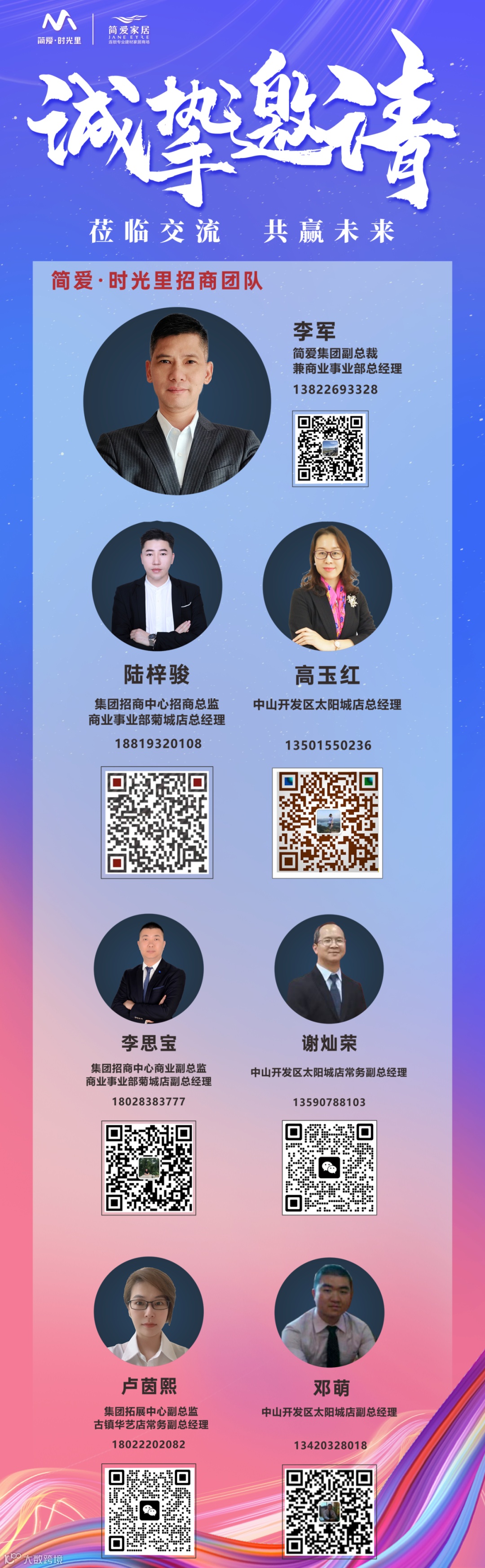 简爱家居:专注行业16年,超100亿总产值,超300场品牌落地活动,服务覆盖一亿人群。坐拥城市CBD黄金商圈千万人流,甄选500+家中高端家居品牌,倾力打造最高品质的家居生活与文化体验平台。新零售时代,简爱家居再升华,不断突破,紧跟互联网时代,升级团队,形成以90后海归新青年为核心的市场营销中心,利用新媒体平台和技术,推动数字化营销转型,构建卖场与商户之间的共同体思想,以“工厂+经销商+商场”三位一体的发展模式打造全新行业格局!携手上下游伙伴开创小而美的精致生活时代,共赢发展,创造时代裂变财富效应。