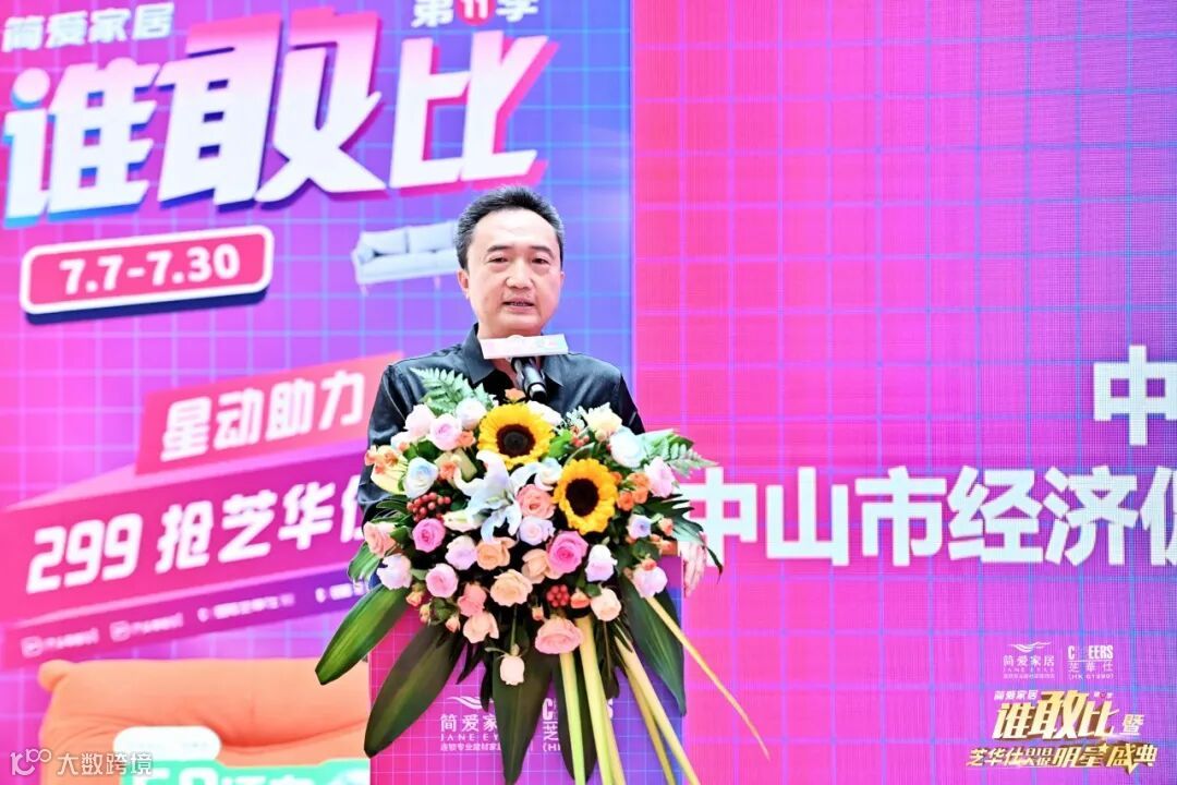 中山市政协常委/中山市社会组织总会会长/中山市经济促进会会长/广东永东实业投资有限公司董事长林伟东先生为本次明星盛典发表了热情洋溢的致辞,林会长表示,简爱集团根植中山,聚焦大湾区16年,已经成功打造简爱时光里商业购物中心、简爱家居专业商场、简爱家博会&婚博会、简艾生活四个业务版块组合拳,创造了无数个商业奇迹,成为市场领军者代名词。在珠三角区域有自己独特的发展定位,对促进本地经济内循环以及带动本土商业品牌的发展起到重要作用。政府各职能部门和各大商业协会对简爱集团的商业战略布局和发展速度给予高度肯定与认可,已逐渐发展成为大湾区及中山市民认可的高品质家居生活与优质购物平台。