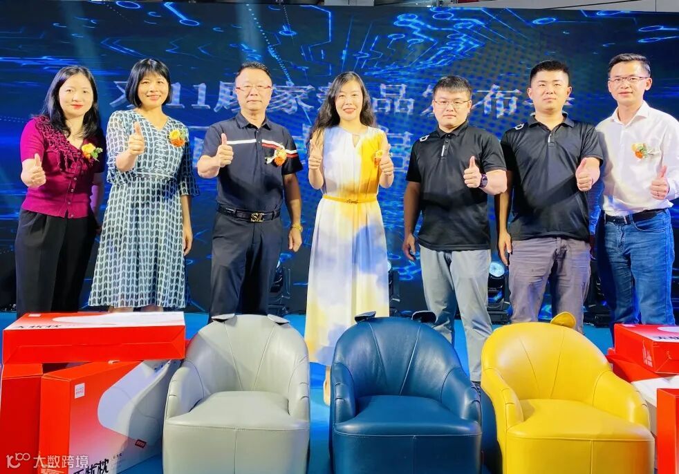 简爱集团一大区总经理兼石岐店总经理罗辑巧女士、广东顾家总经理助理/顾家家居内贸策略委员会GTM产品工艺项目负责人陈樵夫先生、广东顾家区域负责人李站先生、大信新都汇石岐店A座代理店总方圆先生、恒美家居总经理/顾家家居中山城区及三乡代理刘仁龙及黄玲霞夫妇、简爱集团家居招商总监兼古镇华艺广场家居招商总监陈应东先生、简爱集团会展事业部家博会副总经理兼家居事业部一大区石岐店副总经理唐美玉女士,共同参与双11顾家家居新品发布会启动仪式。