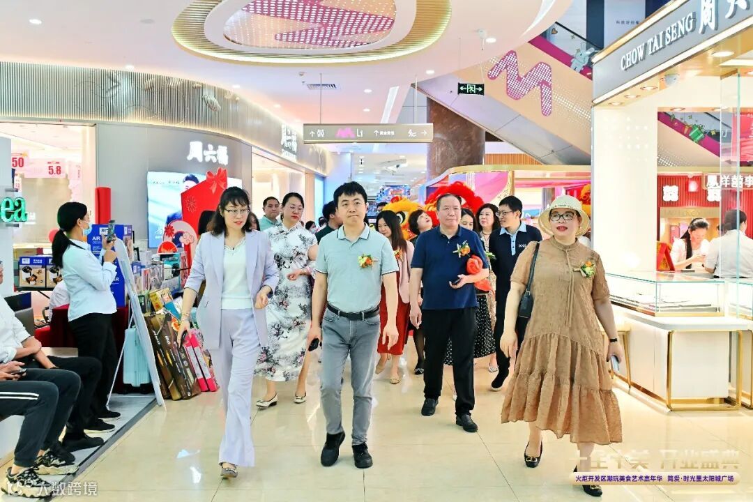 中山市火炬开发区经济发展和科技信息局副局长陈国柱、统计科科长何钱民;广东省餐饮服务行业协会资深副会长/广东省餐饮服务行业协会商业地产专业委员会荣誉主席/广东省商业地产租赁协会荣誉会长/第一商业网董事长黄华军与简爱集团董事长罗辑俐女士等一行参观简爱·时光里太阳城广场。
