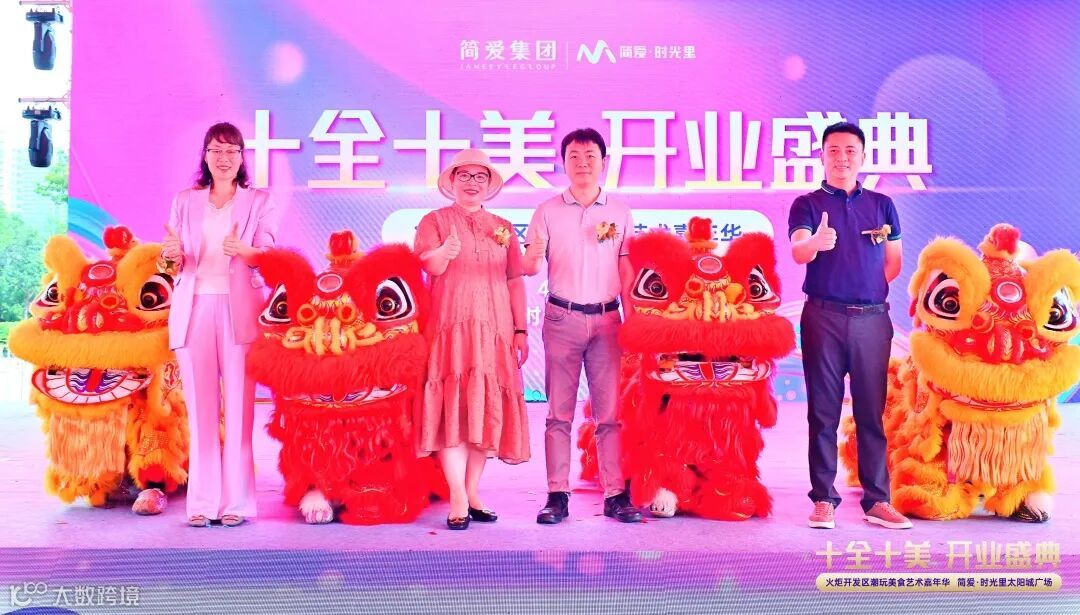 2023年4月29日,“简爱·时光里十全十美开业盛典暨火炬开发区潮玩美食艺术嘉年华”于中山市火炬开发区简爱·时光里太阳城广场盛大举行!蒙自源、蛙小侠、椰小凤、聚满分、意莱莉、破摊烤肥牛、小许同学、乐夹潮玩、名盾男装、皇室童缘十店隆重开业,开业当天商场人流环比增长15%,单日流量突破5万人,在中山火炬开发区经科局的加持下销售同比去年增长35%。