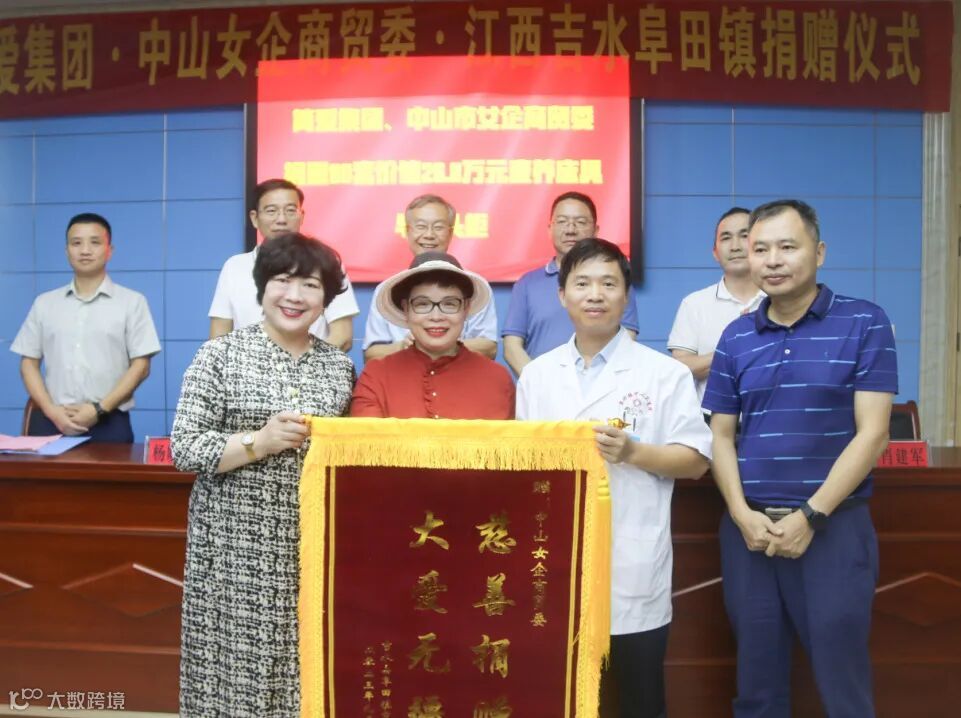 随后,简爱集团与中山女企商贸委向阜田镇中心卫生院捐赠捐赠80套价值26.8万元的康养床具与床头柜、中山四海家具制造有限公司捐赠3万现金、中山屈臣氏捐赠物资一批、宝路易新零售有限公司捐赠物资一批、中山市聚满分餐饮管理有限公司捐赠物资一批、中山市中医院两位专家主任给阜田镇中心卫生院带来了专家服务、广东洪岐文化健康管理有限公司捐赠物资一批,吉水县阜田镇政府现场向各捐赠方回赠了锦旗。