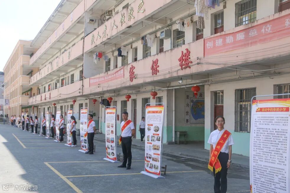 前往阜田镇中心小学观看校园文化展览和大课间视频展示。