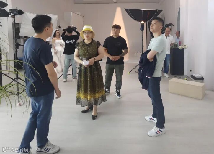 简爱集团董事长罗辑俐等一行在金夫人集团华南区董事总经理阎顺山的陪同下参观广州南沙金夫人华南拍摄基地。