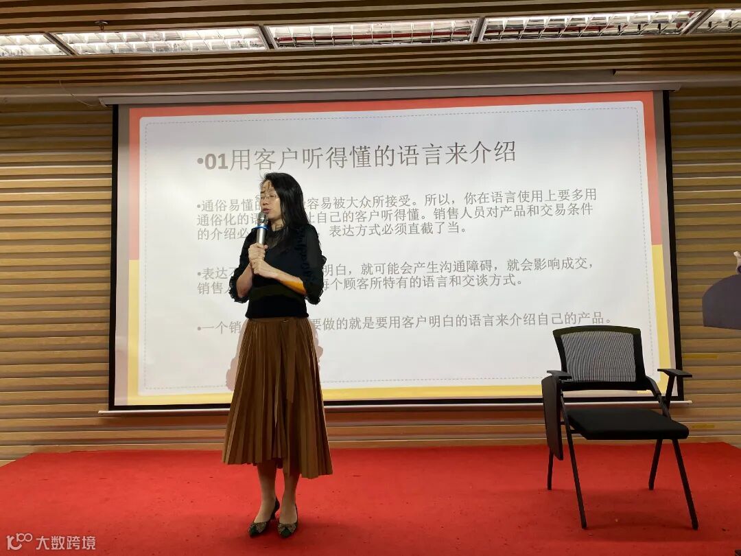 在导师进行整个艺术语言干货培训分享后,梅林老师进阶培训需求及意见建议,邀请学员们上台展示学习成果并进行分享交流,各学员对梅林老师提出的“用客户看得懂的语言来介绍”这个话题进行了深入拆解。