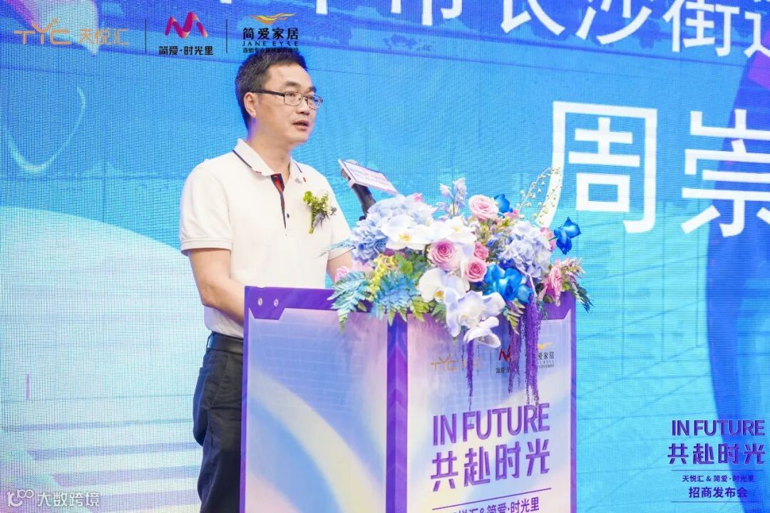 发布会当天,开平市长沙街道办事处主任周崇俭出席本次发布会,并上台致辞。周主任表示,开平市位于珠三角1.5小时生活经济圈,简爱·时光里与天悦汇的强强联袂,将成为引领行业时尚典范,带动开平商贸繁荣与经济发展。