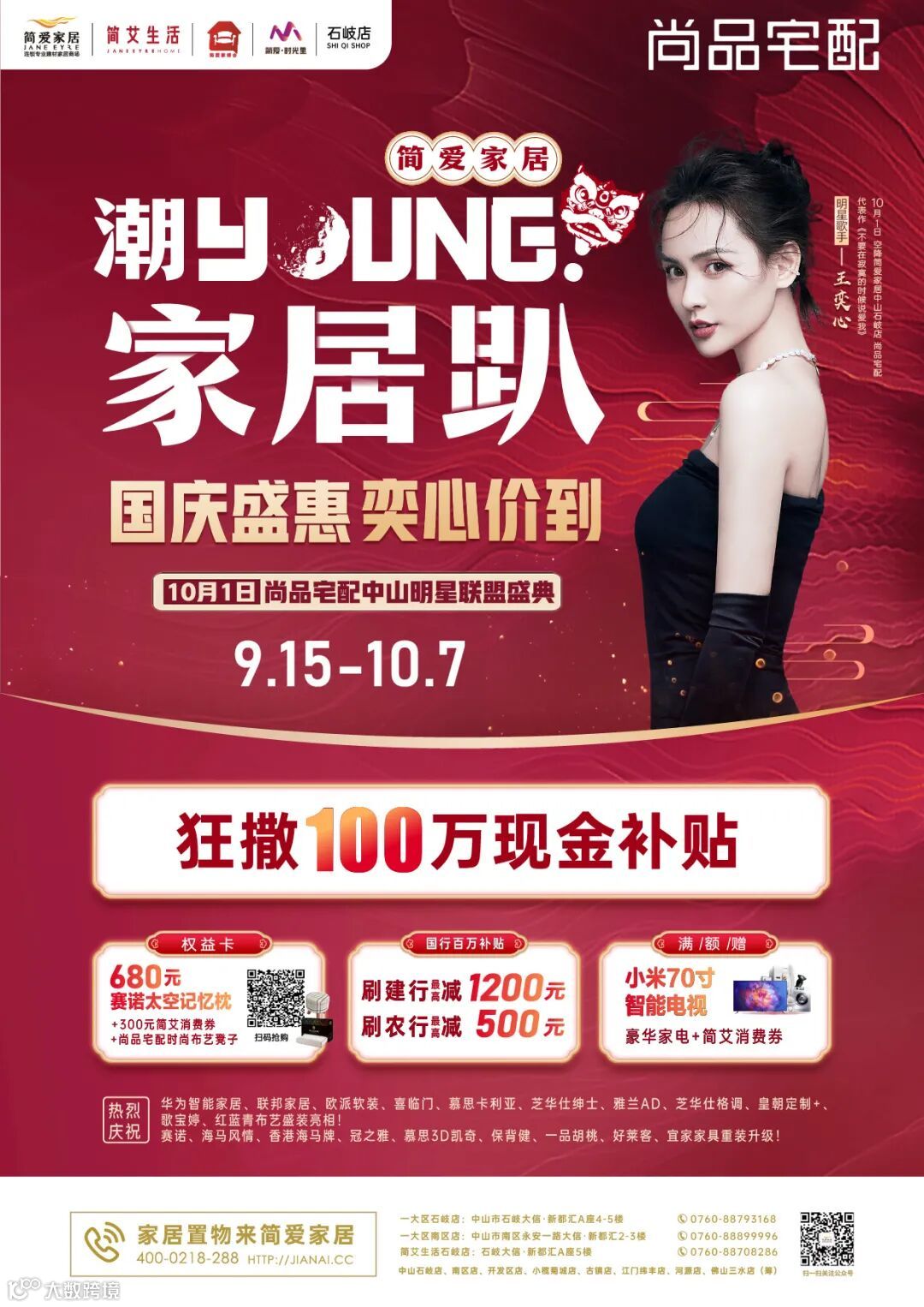 10月1日国庆,简爱家居石岐店尚品宅配9周年明星盛典圆满成功!活动现场,特邀著名歌手王奕心亲临助阵,普天同庆!