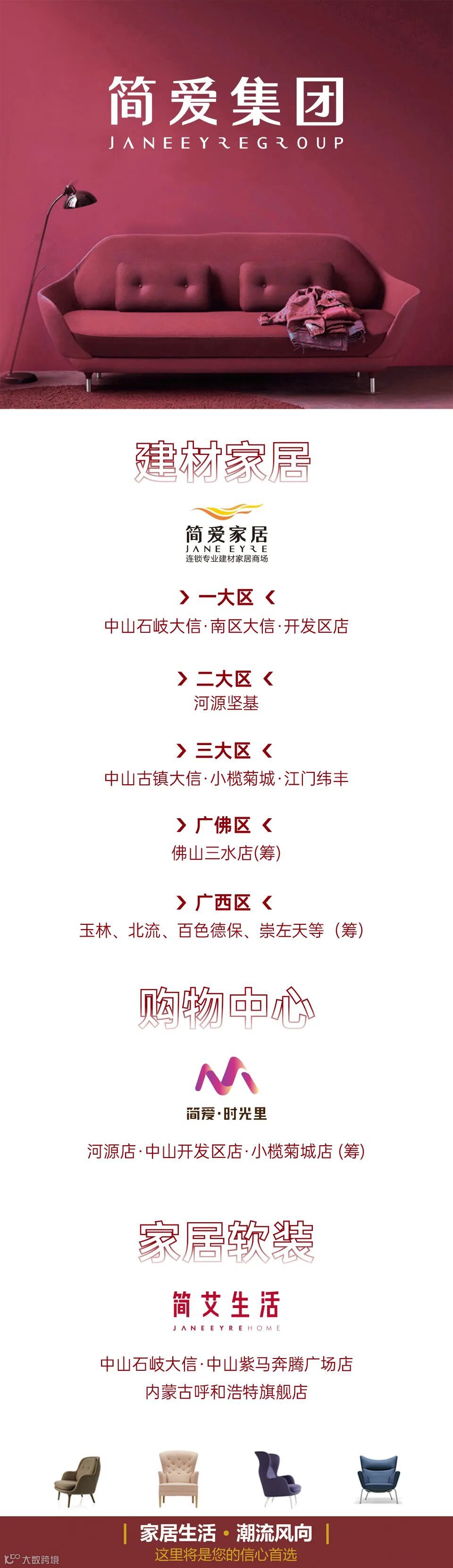 简爱家居作为中国购物中心家居主力店,在珠三角奠定了与商业购物中心合作的良好基础,以创新的家居+零售跨界营销为IP,在十四年间积累发展了一批优质中高端家具建材品牌跟随其拓展的脚步,为其加持。简爱·时光里火炬开发区店作为简爱品牌在综合商业运营的处女座,向市场验证了其专业市场+零售商场的双引擎发展战略运营的机遇洞察力,及运营实力;同时,简爱双引擎战略正在以中山为起点,在大湾区经济的核心发展商圈埋下机遇和希望的伏笔。
