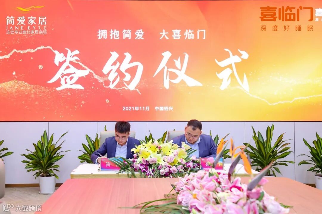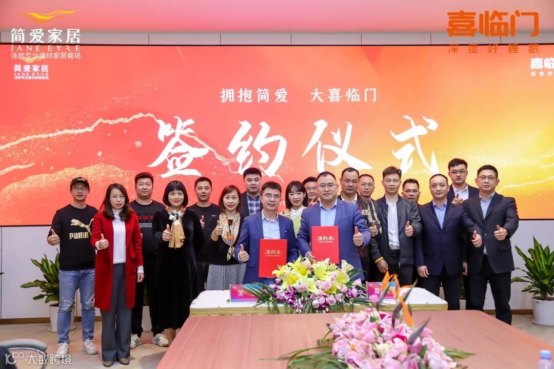 简爱家居与喜临门达成战略合作,举行签约仪式。