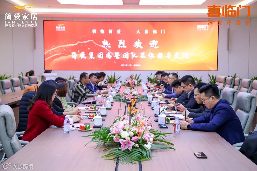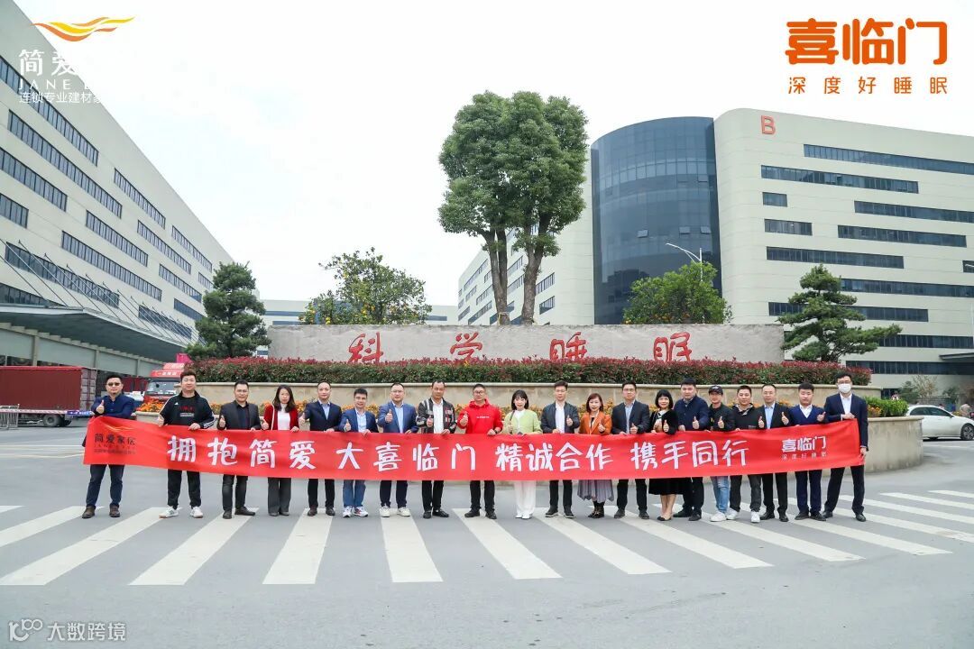 11月15日,简爱集团副总裁钟立维,简爱集团总经理何晓波,简爱集团董事兼简艾生活CEO叶姿,简爱集团副总经理、三大区总经理侯翔军,简爱集团一大区总经理罗辑巧携集团高管团队等一行9人前往浙江绍兴喜临门总部参观交流,与喜临门签署华南发展战略合作协议。双方围绕发挥各自优势,资源共享,在招商落位、联合营销及新渠道等领域达成全方位战略合作共识。双方对本次合作非常满意,表示未来将会加深彼此现有业务以及拓展新兴领域业务的合作,共同为2028年喜临门千亿市值目标共同努力。