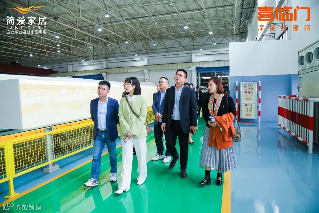 简爱集团高管一行在喜临门国内业务中心副总经理陈雷带领下来到喜临门总部,分别参观了5G工厂、2028厅、睡眠展厅、生产车间和产品实验室等,饶有兴致地体验了喜临门的最新智能床垫和音乐枕,深入了解喜临门的品质工艺和转化化生产操作,感受这个民族品牌的强大与经典。