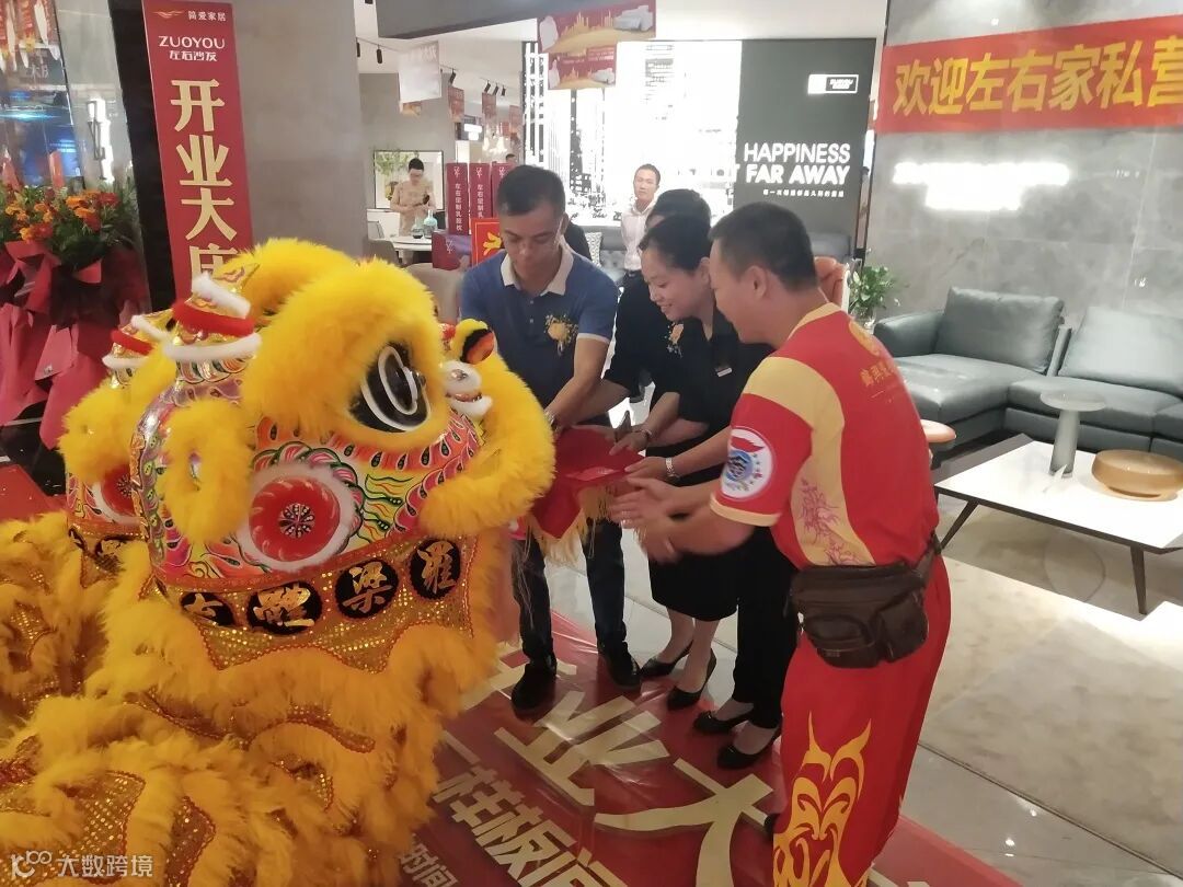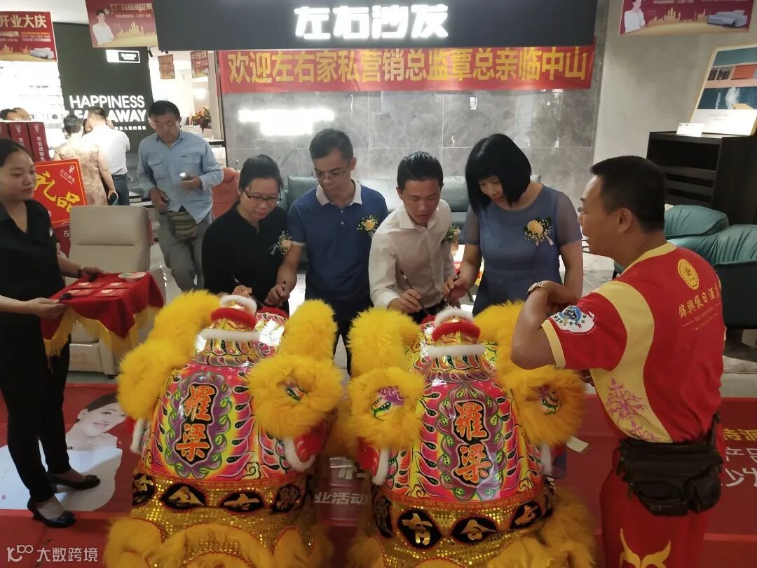 左右家私皮艺事业部闽粤特区总经理傅奥军、左右沙发中山区域总经理杨天明、左右沙发中山区域副总经理肖传晓、简爱家居一大区总经理罗辑巧共同参与醒狮点睛仪式与采青仪式。醒狮欢腾,热闹非凡,左右沙发简爱家居石岐店在未来的发展中,定能前程似锦,大展宏图,财源广进,客如云来!