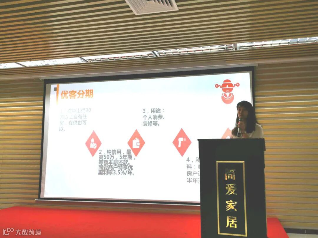 中国银行石岐支行林芸芸副行长莅临简爱家居“谁敢比第八季”启动大会现场,分享简爱商户贷的产品,助力简爱家居商户业绩倍增,促进升级消费,共赢发展!